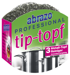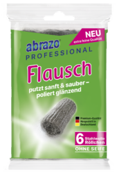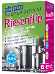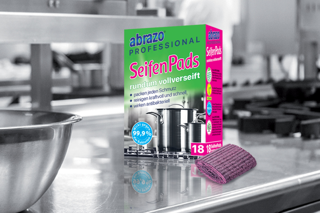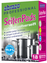 Seit vielen Jahrzehnten gilt die Marke abrazo als Synonym für Reinigungskissen aus verseifter Stahlwolle. Das Sortiment von abrazo PROFESSIONAL ist die leistungsstarke Profi-Serie. Verwender in Großküchen und Kantinen, in der Gastronomie und im Lebensmittelhandwerk vertrauen auf die einzigartigen Leistungsmerkmale wie Schnelligkeit und rückstandsfreie Sauberkeit. Damit sind die Produkte von abrazo PROFESSIONAL unverzichtbare Helfer für natürliche Reinheit und bakterienfreie Oberflächen.